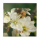 This exquisite ceramic tile features original macro photography of a honey bee on luminous white plum blossoms. The high-gloss glaze provides a brilliant finish, enhancing the depth of the dark background and the delicate glow of the spring petals. Durable and heat-resistant, this tile serves as a sophisticated coaster or a stunning decorative accent for your kitchen or workspace.