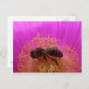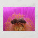 Honey bee postcard collecting pollen from a pink flower.