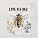 Big illustration of a bee and some yellow and blue flowers on antique handwritten script background with big message "Save the bees" perfect for bee and nature lover, beekeeper. World Bee Day is observed on 20 May each year to draw attention to the essential role bees and other pollinators play in keeping people and the planet healthy.