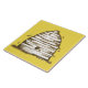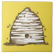 A yellow ceramic tile decorated with a vintage bee skep and bees buzzing about sketched with marker on a yellow background. Nice for writing letters, journalling, lists, and more.