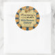 Modern honey jar labels featuring a colourful honey bee logo flying over an attention-grabbing sunburst emblem with personalised text for the name of the beekeeper, type of honey and net weight. Add your business name in two parts by using spaces to align the thin text and bold text fonts: HomeAPIARY, BeeFARM, or HoneyBEES, for example. Change the gold background colour by choosing a different "Design Theme".