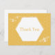 Share with the world your attitude of gratitude with this cute honey bee themed yellow and white hexagon pattern thank you script postcard. Cute pattern on the front, and plenty of space to add customised type or hand written messages of thanks on the reverse.