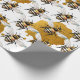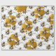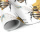 illustrated honey bees hover over honey gold brush splashes for a lively, artful pattern that feels like honey drips. The illustrated details and warm yellow and gold tones make it a charming choice for birthdays, garden parties, housewarmings, or beekeeper gifts. An easy way to wrap anything in sunny, nature inspired style.