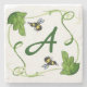 Honey Bees Green Leaf Custom Monogram Stone Coaster