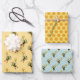 Honey bees with heart & honeycomb pattern wrapping paper sheet