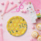 Paper plates featuring aesthetic bee and honey design. Perfect for the baby shower bee theme. Spring and summer baby shower vibes.