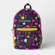 Cute originally designed text name personalised purple, pink, yellow, ruby red and diamond gemstones girls backpack. Typographical pack bag can also be customised with your own short name, currently reads Gianna. Other colours, names and styles are available, or contact me for name requests. Bright graphic text and gemstones watercolor art personalised backpack, ideal for, school, college, school camp or trips out. Other matching items are available. Original hand diamond gemstone painting and graphics design by Sarah Trett for www.mylittleeden.com