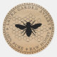 Clean vintage classic round label for honey jar for display and packaging product labels in krafts brown paper appearance with queen bee comb honey logo symbols.