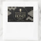 Eye-catching label for your large honey jars. Modern stylised yellow-gold bee with capped honeycomb on a black background.