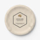 Sample honey tasting paper plates for your customers at the farmers' market with custom text for the beekeeper or apiary name, optional product or service description, and multiple lines of text for contact information. Keep the honey bee logo (or add your own logo) in a black hexagon border over a subtle honeycomb "watermark" pattern in the background over a goldenrod colour.