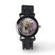 This beautiful Watch features a detailed photograph of a bunch of beautiful pale purple tropical flowers. These pretty flowers are known as the Buddleia bush, which is found in tropical countries and has recently become popular in gardens because it attracts butterflies and is also known as the Butterfly bush. There is a Honeybee sitting on the Buddleia feeding. The photo was taken using macro photography for a detailed result.