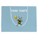 A cute honeybee holds up a honey stick dripping with honey. The text says Shana Tova in English and in Hebrew, L'Shana Tova. You can easily customise this card by changing the background colour and/or by changing the English text or deleting the Hebrew.