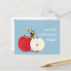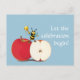 A cute little honeybee stands astride atop a whole apple and an apple half. He is holding a honey stick over the apple, and says "Let the celebration begin!" there is a pastel blue background. On the other side of the card it says "Shana Tova" and you have another cute little bee flying along the bottom right. You can customise the card and change the background blue if you would prefer a different colour. You can personalise any of the text very easily in the boxes provided on the order form.