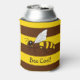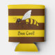Bee the owner of this awesome can cooler. Features a cartoon honeybee and brown and yellow stripes.