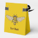 Honey bee with open wings. Custom background colour. Custom text on both sides.