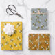 These bee-autiful wrapping paper sheets have original honeybee artwork in three shades. Each sheet shows the bees crawling over honeycomb. The first sheet is a bright honey yellow, and the last sheet is a darker version of the same pattern. The middle sheet has a textured gray pattern with a light honeycomb look. On each sheet, the bees crawl in different directions with their wings out or down. DESIGN TIP: Order as-is or customize to change the size of the patterns. If you want to order certain colors and not others, you can also delete and copy-paste each pattern onto a different sheet. For design assistance, contact FancyCelebration.