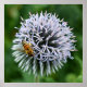 Decorate a living space with this square, photographic poster print that features the photo image of a honeybee on a purple Globe Thistle bloom, otherwise known as Echinops. A lovely, floral image! Select your poster size and customise as desired as well as selecting frame options.