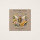 A business card on a kraft paper style background featuring a honeybee surrounded by flowers.