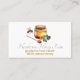 Promote your honey products with this elegant honey themed business card. Done in crisp white the front features a single golden honeybee with a jar of honey, and a honeybee, with wildflowers, on the backside. Custom text is ready to personalise. Matching business products are available.
