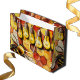 This customisable large gift bag has a honeycomb background in bold orange, yellow and red with a cute bumble bee nestled at the bottom corner of both sides. Garden string lights adorn the top and sides of this large gift bag and you can customise your garden and bee loving message by changing the font and words on the front. A bold and striking statement for your gift presentation. Enjoy!
