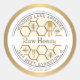 Chiseled gold honeycomb with honey drips and vintage honeybee with a gold gradient border.