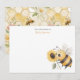 This honeycomb nursery note card features a cute bee holding a sunflower, surrounded by flowers and bees on a warm honeycomb background. The soft and playful design makes it a perfect personalized stationery piece.