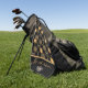 This contemporary design features a geometric gold colour beehive pattern, bumblebees, and a black colour background.