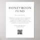 Custom Wedding Honeymoon Fund Poster Sign in modern minimalist style and black and white. The sign features a custom QR code that guests can scan with their smartphone to easily make a donation towards the couple's honeymoon.