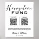honeymoon fund qr code sign, modern wedding cash gift sign, minimalist honeymoon donation poster, wedding venmo paypal zelle sign, elegant honeymoon fund wedding sign, black and white wedding sign, wedding travel fund request sign, honeymoon wish digital wedding sign, QR code wedding registry sign, simple wedding honeymoon fund sign