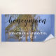 Honeymoon Getaway beach or destination wedding theme. Personalise with the newlyweds first names in white text and date of wedding. Honeymoon is written in black script. Getaway is written in a cool yellow font. Background has blue sky with pretty close-up of three palm trees with fronds blowing in the ocean breeze. Fun keepsake beach towels for the newlyweds. Original Photography and Design © TamiraZDesigns.