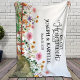 Beautiful honeymoon personalised blanket had watercolor blush wildflower hill garden with bride's and groom's custom names on it.
