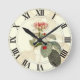 Roman numeral clockface with vintage look Honeysuckle bloom botanical. Rose leaves fill out the design. Rosy red tints and subdued green leaves.