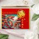 Customisable red greeting money red envelope with origami style papercut of a Dragon in an old city (illustration) + Fu ideogram for Luck. Golden textured paper (image printed) inside.