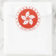 The emblem features the same design elements as the regional Flag of Hong Kong in a circular setting. The outer white ring is shown with the caption of the official name of the territory in Traditional Chinese and the English short form, "Hong Kong".