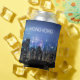 Hong Kong city in China skyline at night design souvenir. Hong Kong panorama cityscape design for travel to China and harbour or vacation in New Territories. Cityscape with skyline for Hong Kong Island vacation.