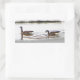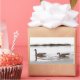 On a grey spring day in Alaska two Canada Geese, often referred to as “honkers,” swim in a body of water still partially choked with ice. This image is from a photograph taken by the artist. The Canada Goose, Branta canadensis, has a black head and neck, white patches on the face, and a brownish-grey body. The black head and neck with white "chinstrap" distinguish the Canada Goose from all other goose species, with the exception of the Barnacle Goose, but the latter has a black breast, and also grey, rather than brownish, body plumage. The Canada Goose ranges 30 to 43 inches in length and has a 50 to 73 inch wingspan. Males usually weigh 7.1–14 lbs and can be very aggressive in defending territory. The female looks virtually identical but is slightly lighter at 5.5–12 lbs, and has a different honk. The life span in the wild of geese that survive to adulthood ranges 10–24 years Canada Geese are native to North America. They breed in Canada and the northern United States in a variety of habitats. Nests are usually located in an elevated area near water such as streams, lakes, ponds and sometimes on a beaver lodge. Eggs are laid in a shallow depression lined with plant material and down. In recent years, Canada Goose populations in some areas have grown substantially, so much so that many consider them pests for their droppings, bacteria in their droppings, noise, and confrontational behaviour. This problem is partially due to the removal of natural predators and an abundance of safe, man-made bodies of water such as found on golf courses, in public parks and beaches, and in planned communities. Due in part to the interbreeding of various migratory subspecies with the introduced non-migratory Giant subspecies, Canada Geese are frequently a year-around feature of such urban environments. Canada Geese have reached northern Europe naturally, as has been proved by ringing recoveries. The birds are of at least the subspecies parvipes, and possibly others. Canada Geese are also found naturally on the Kamchatka Peninsula in eastern Siberia, eastern China, and throughout Japan. Like most geese, the Canada Goose is migratory with the wintering range being most of the United States. Honking from large groups of Canada Geese flying in V-shaped formation signal the transitions into spring and autumn. In some areas, migration routes have changed due to changes in habitat and food sources. In mild climates from California to the Great Lakes, some of the population has become non-migratory due to adequate winter food supply and a lack of former predators. Canada Geese are primarily herbivores, although they sometimes eat small insects and fish. Their diet includes green vegetation and grains. The Canada Goose eats a variety of grasses when on land. It feeds by grasping a blade of grass with the bill, then tearing it with a jerk of the head. The Canada Goose also eats grains such as wheat, beans, rice, and corn when they are available. In the water, it feeds from silt at the bottom of the body of water. It also feeds on aquatic plants, such as seaweeds. In urban cities, they are also known to pick food out of garbage bins. Adult geese are often seen leading their goslings in a line, usually with one parent at the front, and the other at the back. While protecting their goslings, parents often violently chase away nearby creatures, from small blackbirds to lone humans that approach, after warning them by giving off a hissing sound and will then attack with bites and slaps of the wings if the threat does not retreat or has seized a gosling. Most of the species that prey on eggs will also take a gosling. Although parents are hostile to unfamiliar geese, they may form groups of a number of goslings and a few adults, called crèches.