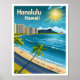 Honolulu Hawaii - Coastal View Vintage Travel Poster