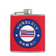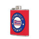 The flask itself is fine. It’s a cheap flask, obviously bought in bulk, however am prepared to overlook that. Given that it is a personalized item, I would have liked to have seen gift boxing instead of the generic packaging. Terrible printing, and/or quality. It’s a cheap, tacky vinyl. It is not cut straight and is also applied in a way that it is overhanging the bottom, causing the glue to catch on items and it will eventually roll and tear, damaging the wrap.