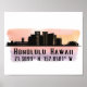 Wall art print features Honolulu Hawaii city skyline silhouette with watercolor splash and latitude & longitude map coordinates
