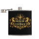 The flask itself is fine. It’s a cheap flask, obviously bought in bulk, however am prepared to overlook that. Given that it is a personalized item, I would have liked to have seen gift boxing instead of the generic packaging. Terrible printing, and/or quality. It’s a cheap, tacky vinyl. It is not cut straight and is also applied in a way that it is overhanging the bottom, causing the glue to catch on items and it will eventually roll and tear, damaging the wrap.
