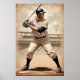 Commemorative artwork of a baseball player in the style of a vintage trading card. It was created in DreamUp and upscaled in Leonardo.ai.