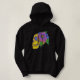 Keep warm and look cool in this hoodie with skull artwork. This abstract skull print hooded sweatshirt features an abstract line art style skull with a flower head piece, in shades of yellow, green , pink , purple, and blue. Original ink and pencil artwork by The Gifted Grackle.