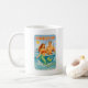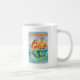 “Hooked Up” blends classic pin-up charm with coastal fishing humor. Featuring a rugged fisherman and flirty mermaid in a playful offshore fantasy scene, where she grabs the hook and flicks her jewel green tail. Sun soaked vintage colors, old-school poster style, and just the right amount of sass make this fun coffee mug a great way to start your day with ocean energy.
