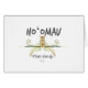 Polynesian watercolor graphic features Tiki head, ferns and text. "Ho' Omau" - Never give up.