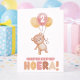 Celebrate a child's birthday in a sweet and playful way with this soft birthday card featuring a teddy bear and balloons. The hand-painted illustration in warm pastel colors radiates joy and softness, perfect for young children.