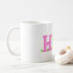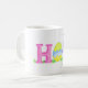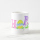 Fun Easter mug! "Hop" written in a hand drawn design with an Easter egg and spring flowers among the letters.