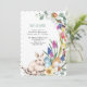 Gorgeous Easter Brunch invitation with an easter bunny, spring flowers, greenery and easter eggs. The beautiful floral arrangement includes daffodil, narcissus, snowdrop, willow, muscari grape hyacinths, tulips and eucalyptus leaves.