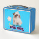 This is a standard metal lunchbox that appears to work just fine. We designed this box ourselves with an uploaded photo and custom text on the front and back. It looks absolutely beautiful except the front of the lunchbox is not centered like it shows in the photo. The print borders don't align with the inset flat part of the box where the preview photo online showed it perfectly centered in there. The back looks nice and centered though.