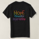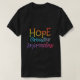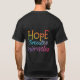This inspiring t-shirt design features the phrase "Hope Creates Miracles" in bold, multicolored letters against a dynamic, abstract background. The design conveys a message of optimism, resilience, and the power of hope to bring about extraordinary outcomes. It encourages wearers to embrace hope as a catalyst for positive change and believe in the possibility of achieving the impossible.
