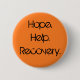 A small, round pin with the words 'Hope. Help. Recovery.' printed on it. Orange background signifies self-harm awareness. March 1st is Self-Injury Awareness Day.